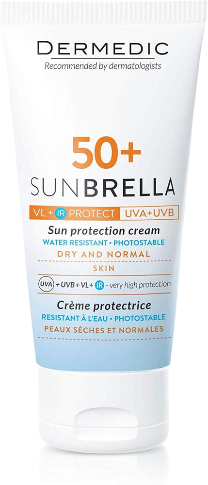 Dermedic Sunbrella SPF 50+ Cream for Dry & Normal Skin is a high-protection sunscreen designed to shield sensitive skin from harmful UVA & UVB rays. Its deeply moisturizing formula keeps skin hydrated, nourished, and protected while preventing sun-induced dryness and irritation.