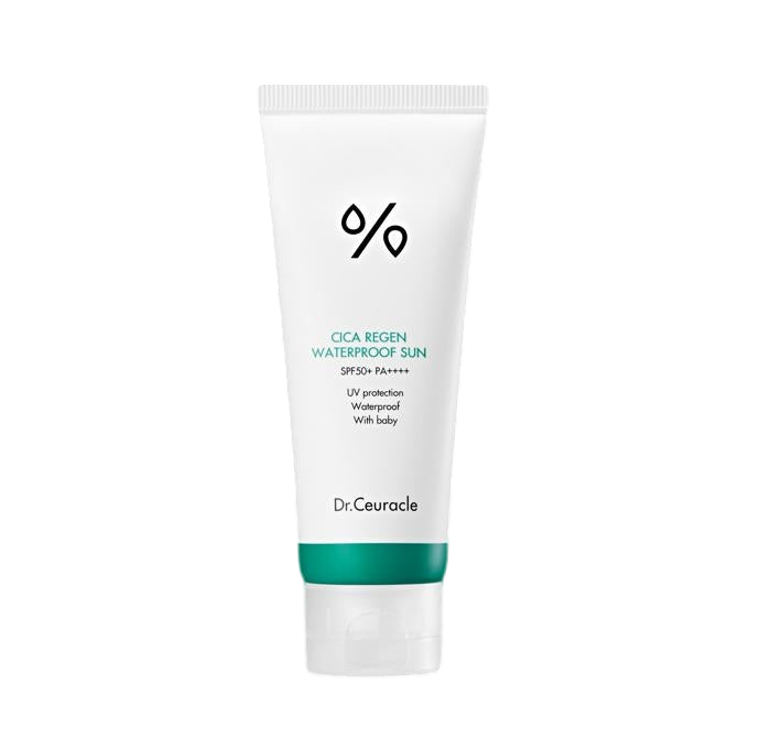 Dr.Ceuracle Cica Regen Waterproof Sun is a high-protection, water-resistant sunscreen that combines powerful UV defense with soothing and barrier-repairing care. Infused with Centella Asiatica (Cica) and Panthenol, it provides SPF 50+ PA++++ protection against UVA and UVB rays while maintaining hydration and calmness, even during outdoor activities or in humid conditions. This sunscreen offers a lightweight, non-sticky finish that stays intact through sweat and water exposure — perfect for sensitive and active skin.