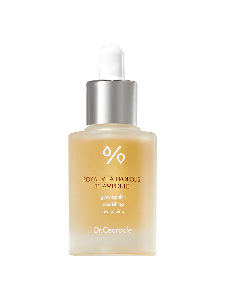 Dr.Ceuracle Royal Vita Propolis 33 Ampoule is a radiance-boosting and nourishing facial serum formulated with 33% propolis extract and royal jelly to deeply rejuvenate and brighten dull, tired skin. Enriched with vitamins and antioxidants, it helps restore vitality, balance hydration, and strengthen the skin’s natural barrier—leaving your complexion luminous, firm, and healthy-looking.