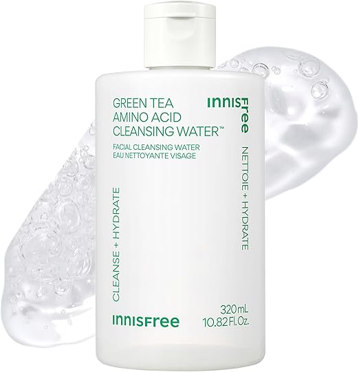 Innisfree Green Tea Amino Cleansing Water is a mild yet powerful micellar cleansing water formulated with Beauty Green Tea™ extract and amino acid complex to gently remove makeup, sunscreen, and impurities without stripping the skin’s natural moisture. Enriched with hydrating and soothing antioxidants, it leaves skin feeling clean, refreshed, and moisturized — no rinsing required. Ideal for all skin types, including sensitive skin.
