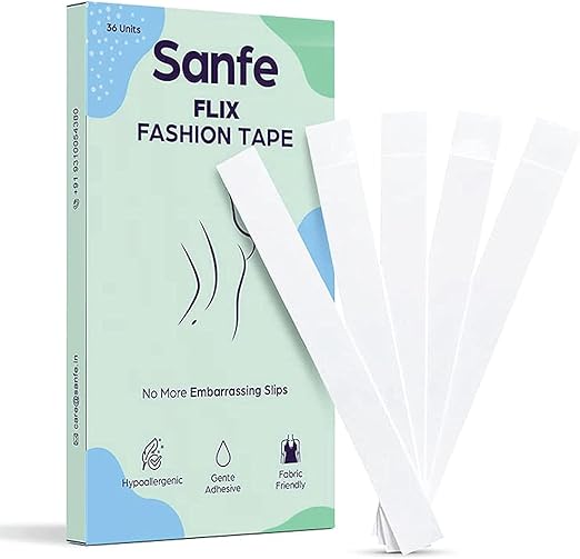 Stay confident and wardrobe-malfunction–free with the Sanfe Flix Fashion & Fabric Tape, designed to securely hold clothing in place. These double-sided, skin-friendly adhesive strips stick seamlessly to both skin and fabric, offering instant support for plunging necklines, strapless outfits, open backs, saree pleats, and quick clothing fixes. Invisible, strong, and gentle — these fashion tapes keep your outfit exactly where you want it.