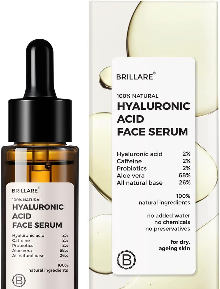 Brillaire Hyaluronic Acid Face Serum is a deeply hydrating and plumping formula designed to replenish moisture, restore elasticity, and give your skin a smooth, dewy glow. Enriched with multi-molecular Hyaluronic Acid, Vitamin B5, and Aloe Vera Extract, this serum locks in hydration for long-lasting softness while improving skin texture and radiance. Perfect for dry, dehydrated, or dull skin that needs an instant moisture boost.