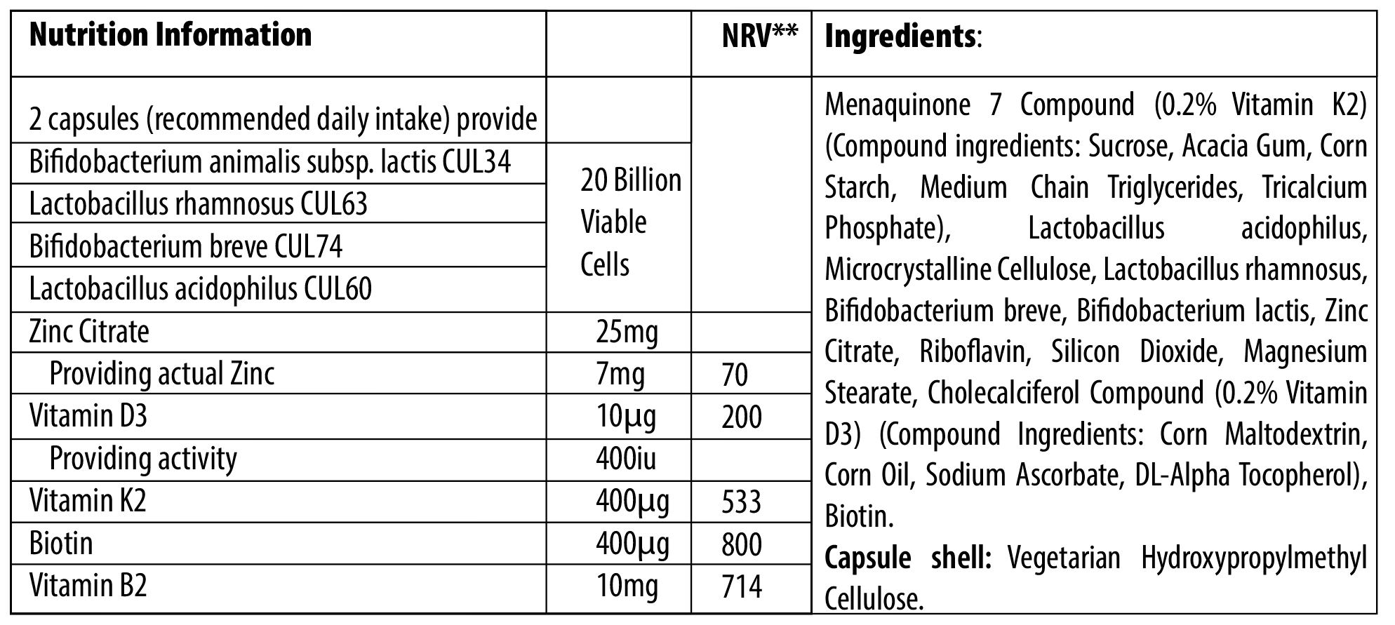 Nutritional Skin Support from zinc, Biotin, Vitamins D3 and K2 with live probiotic cultures