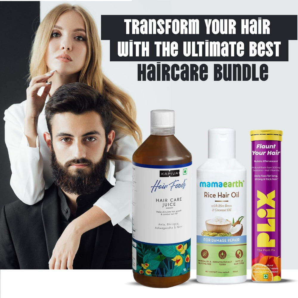 1. Kapiva Hair Care Juice (1L): This nutrient-rich blend of superfoods like amla, biotin, and aloe vera nourishes your hair from within, promoting healthy growth and shine.
