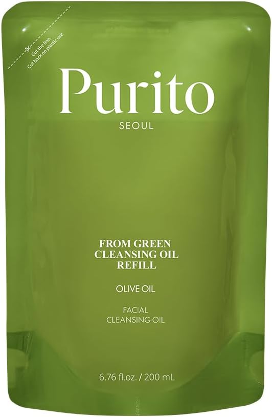 Purito From Green Cleansing Oil (Refill) 200ml is a gentle, plant-based formula that removes makeup, sunscreen, and excess sebum without stripping the skin. It effectively breaks down impurities while keeping the skin hydrated and balanced.