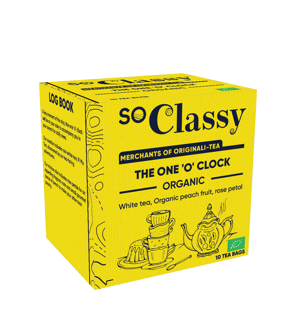 So Classy's creation includes rare white tea, Pi Mu Tan, discovered by their tea-faring adventurers. The mixture also includes rose petals for an appealing fragrant note and small gourmet pieces of peach to make your afternoon peachy.